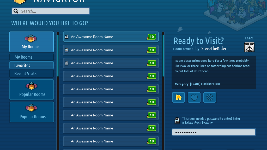 Reimagining of the "Public Spaces" for the online game, Habbo.